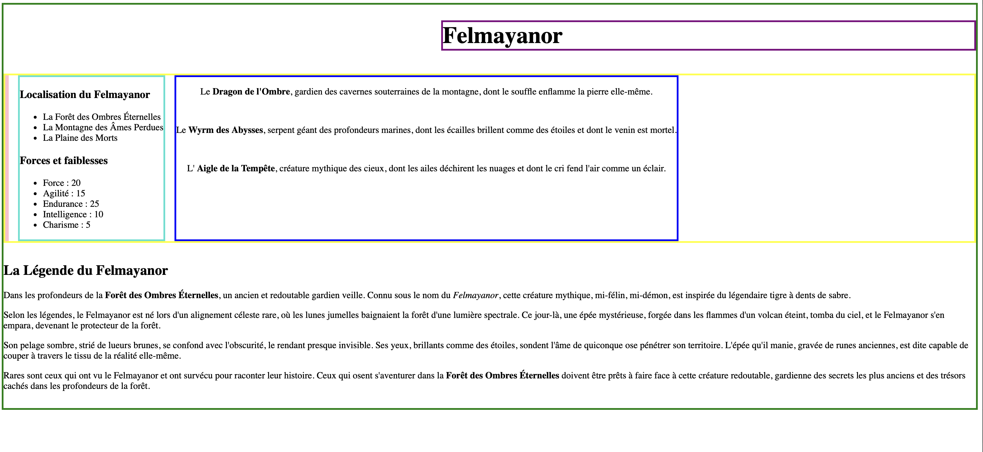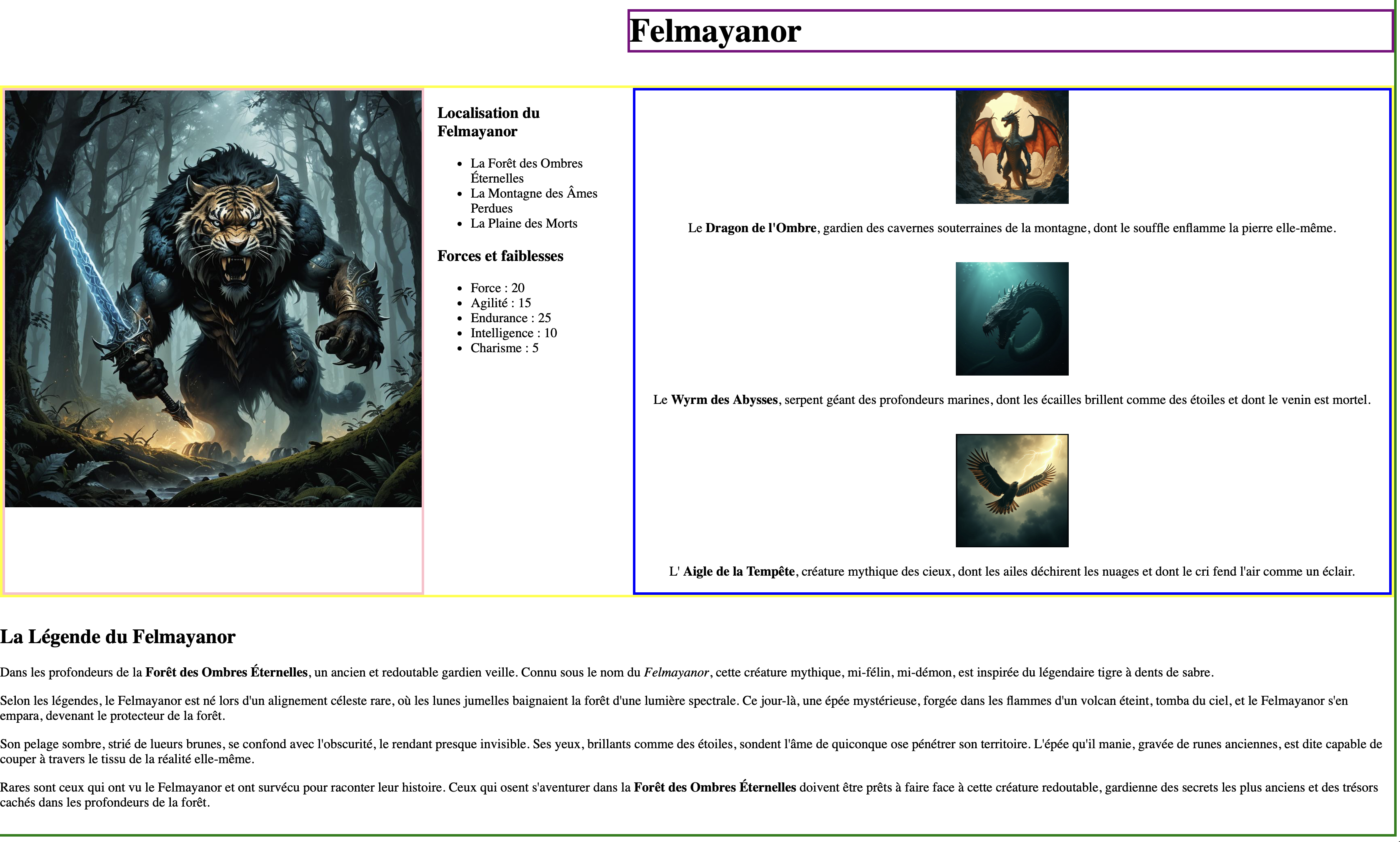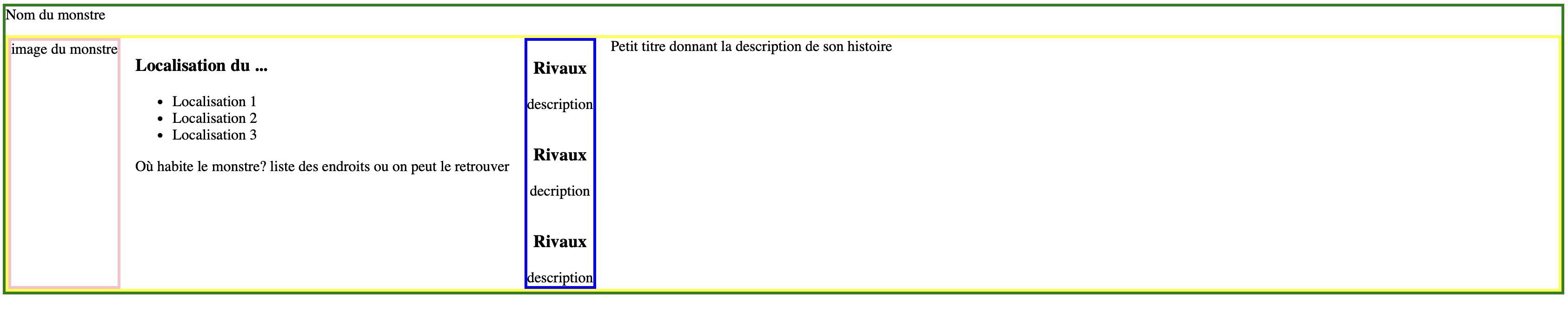 Ajouter dans le bloc contenant la description et l'histoire de son monstre, un titre de niveau 3 permettant de structurer la page et en dessous un paragraphe expliquant l'histoire du monstre/personnage.