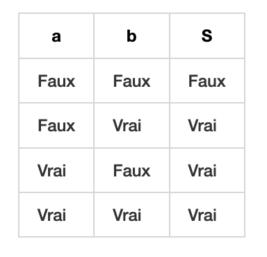 | Fonction NOT | Fonction OR | Fonction AND |